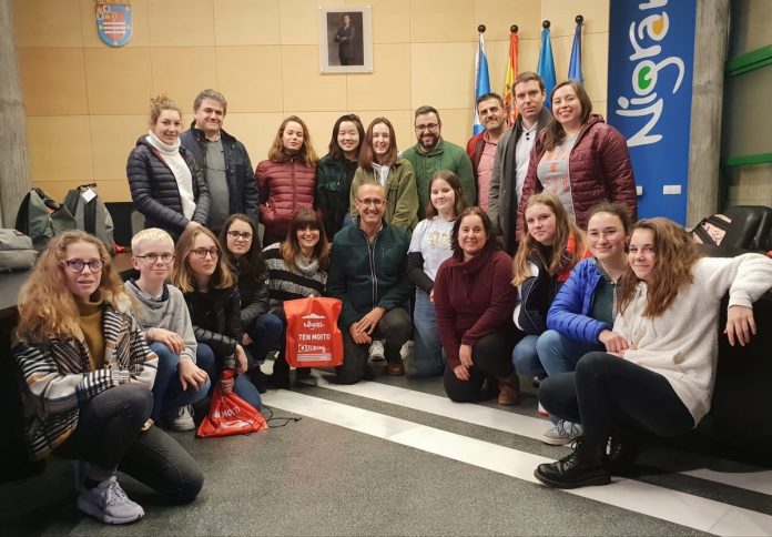 El alcalde de Nigrán, Juan González, y la edil de Educación, Marina Vidal, recibieron ayer por la tarde en el Salón de Plenos del Concello a los 12 alumnos y 2 profesores del Lycée La Province de Fécamp (Alta Normandía, Francia) de intercambio actualmente con el CPI Arquitecto Palacios de Panxón.