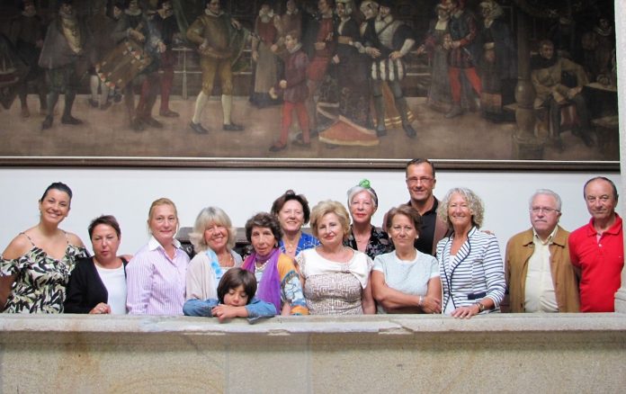 El alcalde de Baiona, Ángel Rodal, y la concejal de Turismo, Beatriz González, recibieron a la turista más fiel en un emotivo acto en el que estuvo acompañada por un grupo de amigas que también residen en Baiona.
