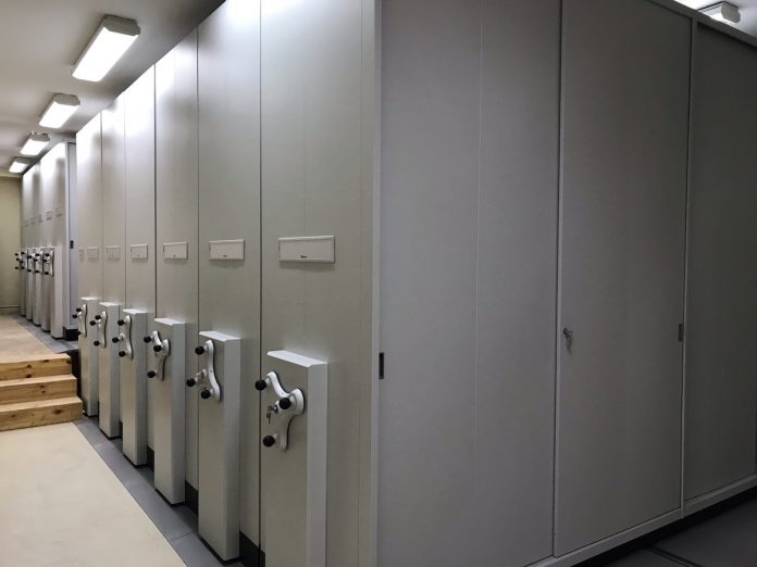 La nueva ubicación del archivo cuenta con armarios equipados con estantes y bastidores para poder soportar las carpetas, reforzados para garantizar una carga por estante de 100 Kg/ m uniformemente repartidos, disponen de tope posterior y regulables en altura, con accesorios varios cómo sujeta libros, carpetas colgantes, etc. Los armarios disponen de sistema de bloqueo general y elemento para evitar el acceso por la parte frontal, todos los paneles de cierre y acabado tienen chapa de acero.