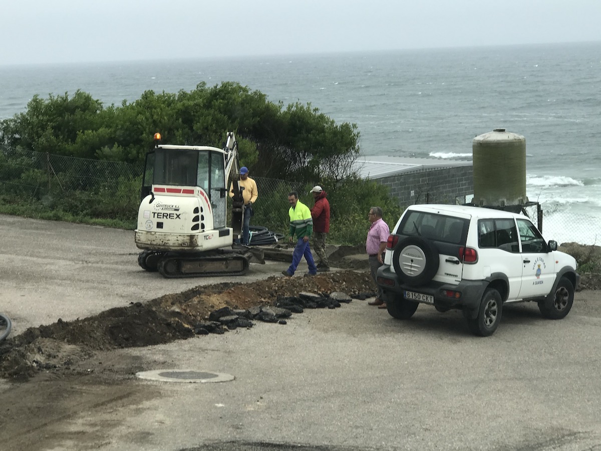 Operarios municipales trabajan desde hace una semana en el relevo de un tramo de la red de suministro de agua en la zona de la subida de la E.D.A.R. de A Guarda.