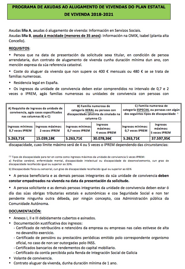 O Concello de Baiona pon ao servizo dos veciños as oficinas da OMIX para poder solicitar estas axudas económicas ao alugamento de vivendas do Plan Estatal de Vivenda. O prazo finaliza o 11 de outubro.