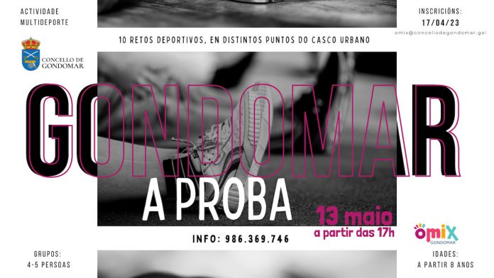 “Gondomar a proba” es una actividad de multideporte, en la que se deberán formar grupos de entre cuatro o cinco personas, con edades a partir de los ocho años y con un capitán de equipo. Juntos deberán superar 10 retos distribuidos por el casco urbano del ayuntamiento en un tiempo máximo de una hora.