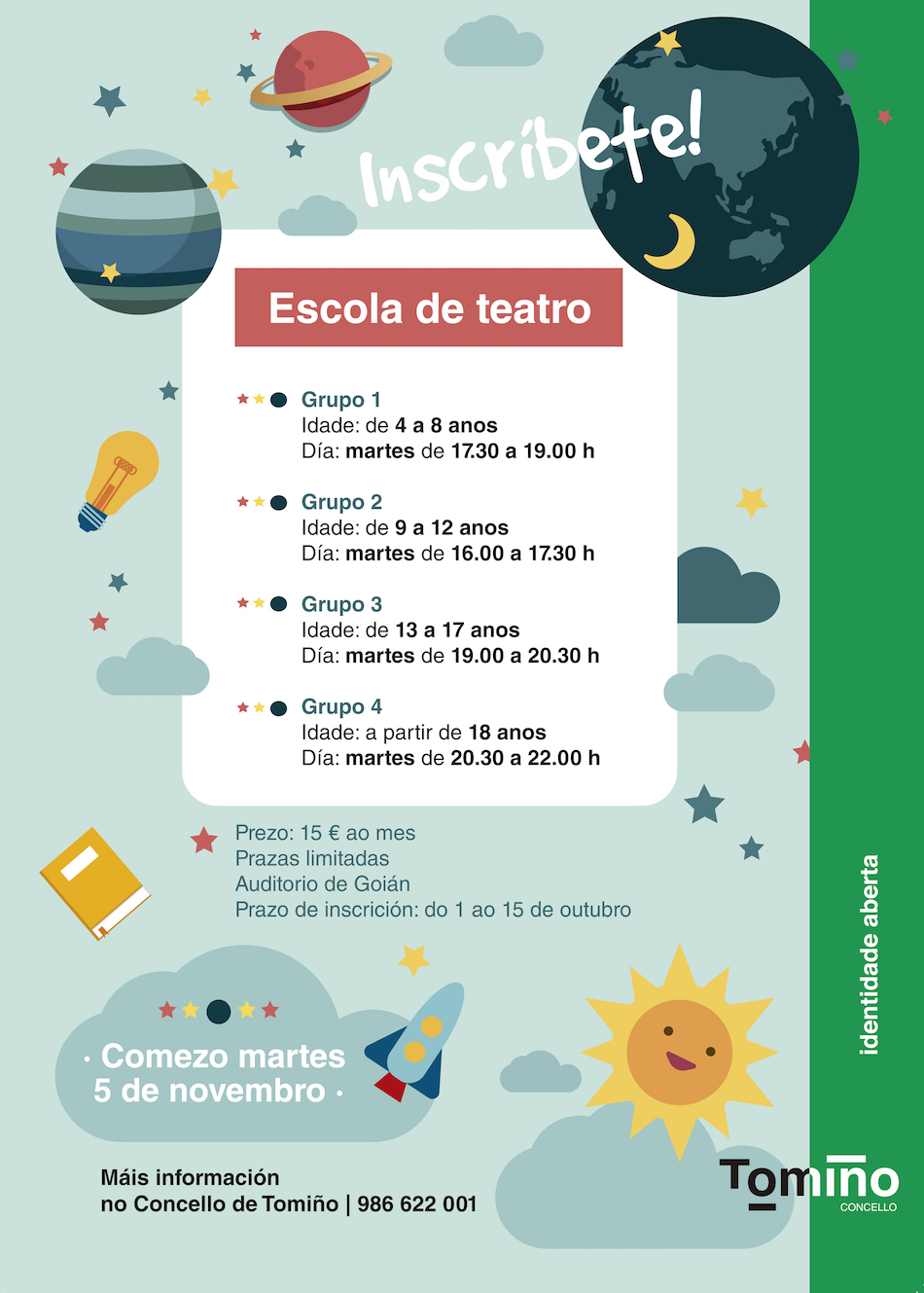 Todas as persoas interesadas poderán inscribirse ata o vindeiro 15 de outubro. Os grupos contan con prazas limitadas e o prezo da actividade é de 15 euros ao mes, aínda que existen descontos no caso de asistir varios membros dunha mesma familia a calquera dos grupos formados.