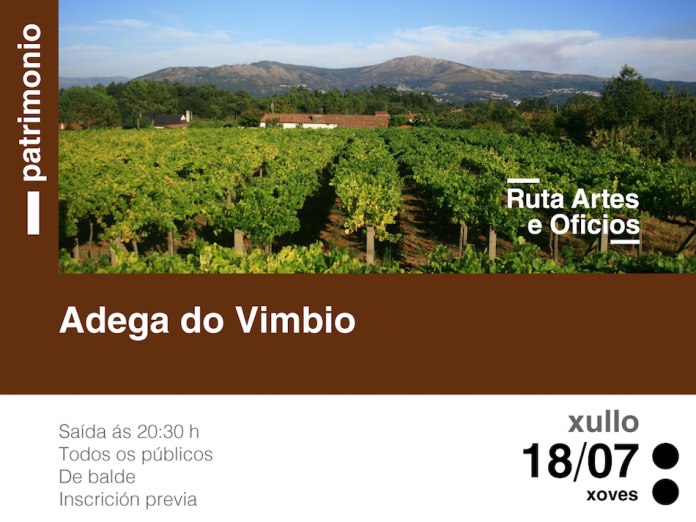 A Ruta Artes e Oficios 2019 continúa este xoves (18 de xullo) cunha visita guiada pola Adega do Vimbio, con saída ás 20.30 horas. Trátase dunha actividade, de balde, que ten coma fin promocionar o patromonio de Tomiño. Explicarase todo o proceso para a elaboración do viño e rematarase cunha cata-degustación.