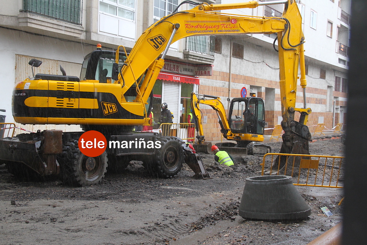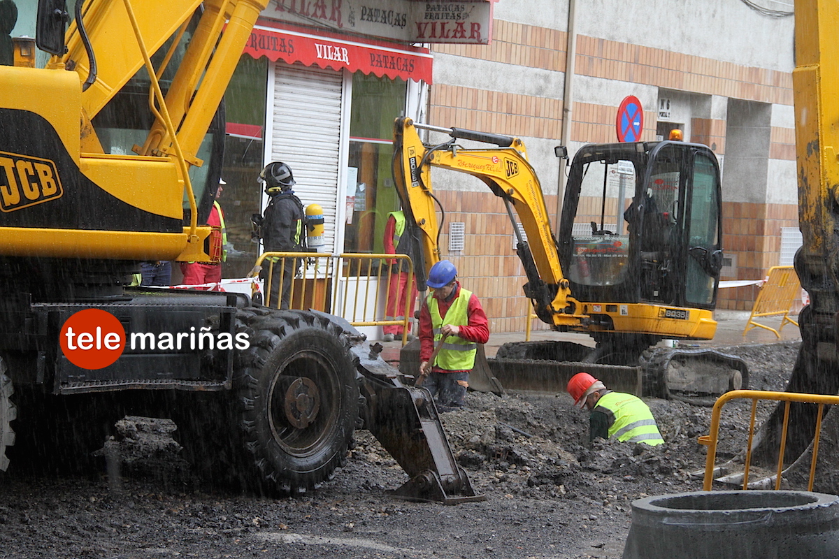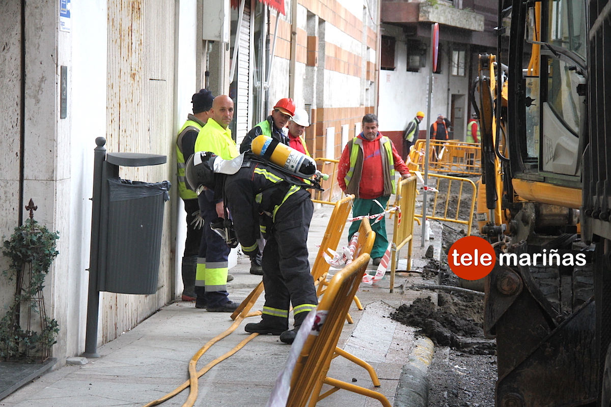 Una fuga de gas en la céntrica calle Ciudad de Vigo desató la alarma entre los vecinos de Baiona. Al parecer, la maquinaria que ejecuta las obras de humanización agujereó una tubería y el combustible salió a presión.