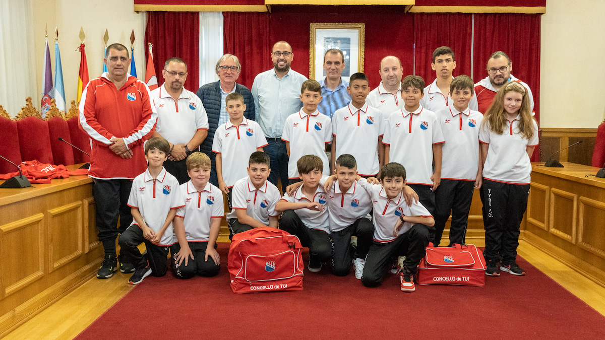 Esta mañana se celebró una recepción a los 11 jugadores y la jugadora del Tyde F.C. que van a participar en el Torneo Internacional de Versmold, donde compartirán experiencia con clubes de 12 países. Fueron recibidos en el salón de sesiones de la casa del Ayuntamiento de Tui por el alcalde de Tui en funciones, Enrique Cabaleiro, y por el concejal de Deportes en funciones, Rafael Estévez.