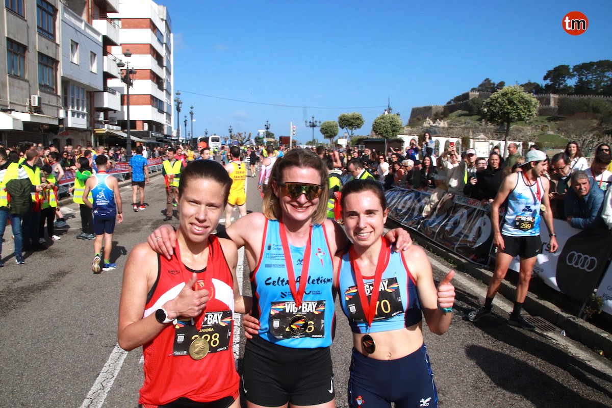 Alice Finot se convierte en la tercera atleta que inscribe su nombre en dos ocasiones en el palmarés de la Vig-Bay. La subcampeona de Europa de 3.000 metros, ganó con total autoridad en la prueba femenina de la media maratón con un tiempo de 1 hora y 15 minutos, seguida de Sandra Mosquera y Zoe Cardin.