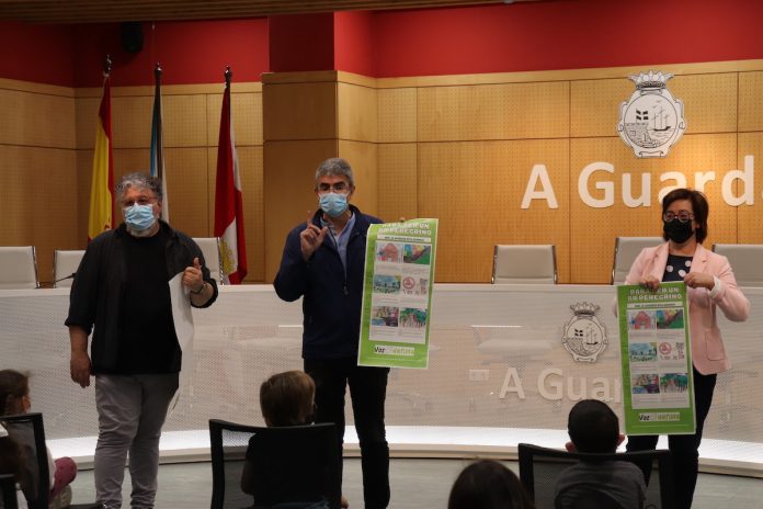 El pasado viernes, el Salón de Plenos del Concello de A Guarda acogió un acto en el que el alumnado del CEIP Manuel Rodríguez Sinde entregaron a las autoridades locales varios carteles en los que se muestra, en tres lenguas, galego, español e inglés, y con dibujos, lo que debe de ser un buen peregrino.