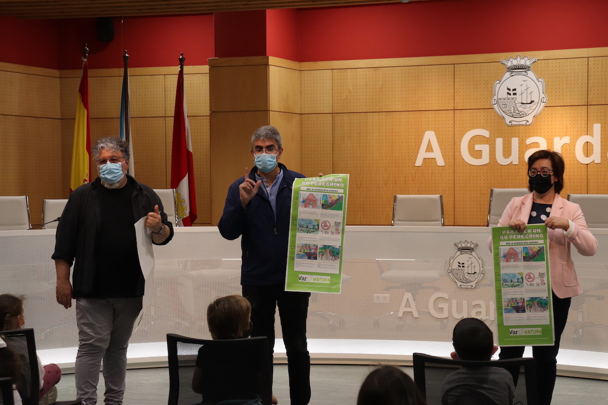 Antonio Lomba, alcalde de A Guarda, se mostró muy interesado por esta iniciativa, dando las felicitaciones a los alumnos presentes, con el compromiso adquirido de colocar estos carteles en los espacios por los que pasan los peregrinos que realizan el Camino Portugués por la Costa a su paso por la villa, como es la Estación Marítima, la Oficina de Turismo o el Albergue Municipal.