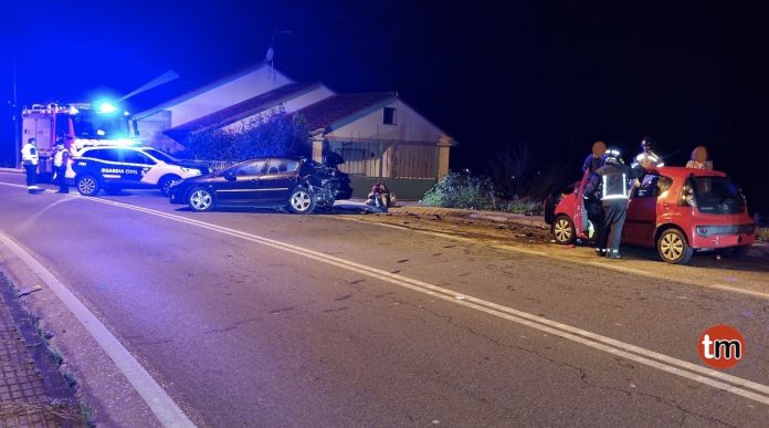 Dos personas han resultado heridas esta madrugada como consecuencia de una aparatosa colisión de un turismo contra otro que estaba perfectamente estacionado en Vincios, Gondomar.
