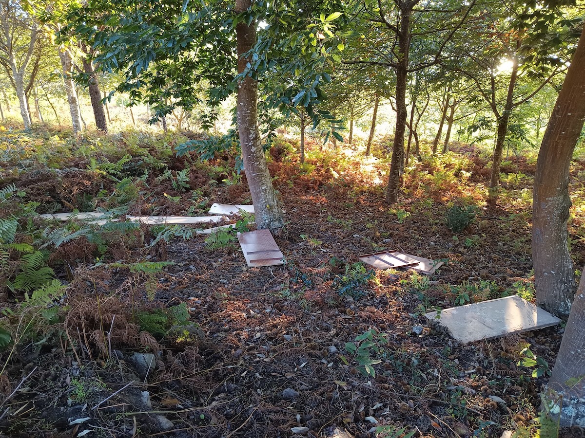Los cascajos fueron abandonados en dos lugares distintos, uno en una zona recientemente desbrozada y otro bajo unos castaños, separados por unos 20 metros de distancia. “Están esparexidas a uns sete metros da pista de terra que vai de San Amaro As Chans”, añadió Martínez, señalando que ahora son ellos quienes deben encargarse de retirar los muebles de una cocina que alguien cambió en su casa y que decidió desechar de manera irresponsable en el monte.