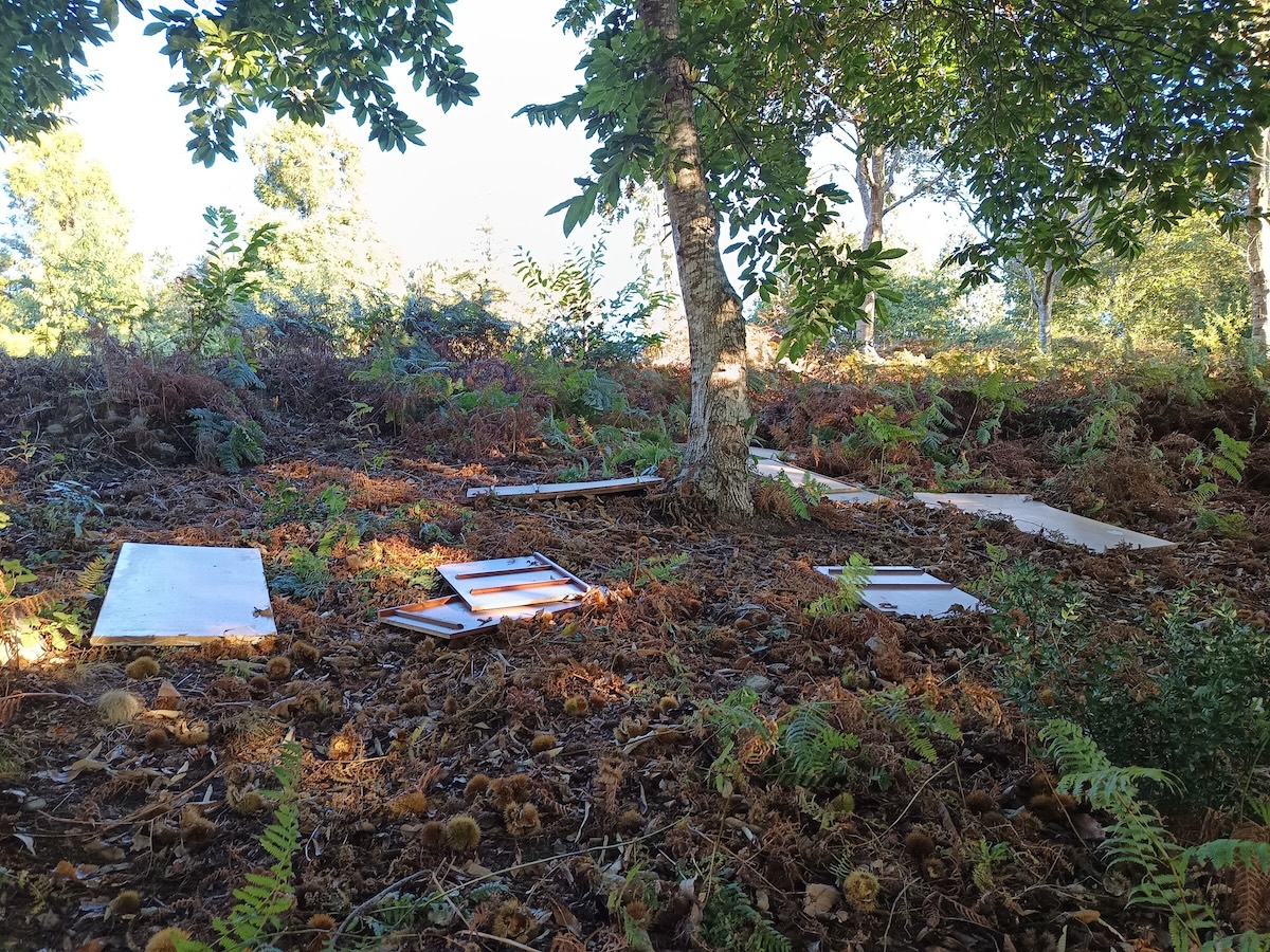 Los cascajos fueron abandonados en dos lugares distintos, uno en una zona recientemente desbrozada y otro bajo unos castaños, separados por unos 20 metros de distancia. “Están esparexidas a uns sete metros da pista de terra que vai de San Amaro As Chans”, añadió Martínez, señalando que ahora son ellos quienes deben encargarse de retirar los muebles de una cocina que alguien cambió en su casa y que decidió desechar de manera irresponsable en el monte.