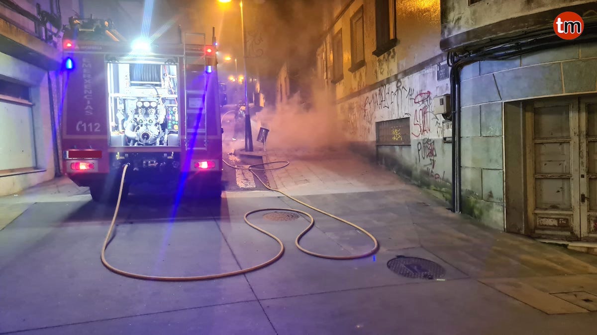 Pasadas las cuatro de la madrugada, los pirómanos comenzaban su ruta incendiaria en la Rúa Enrique María Sexto. Allí quedaban completamente calcinados un contenedor de papel y cartón y otro de plástico. La rápida actuación del GES evitó que las llamas se propagasen al resto de colectores, aunque el fuego también afectó parcialmente a otro de plástico.
