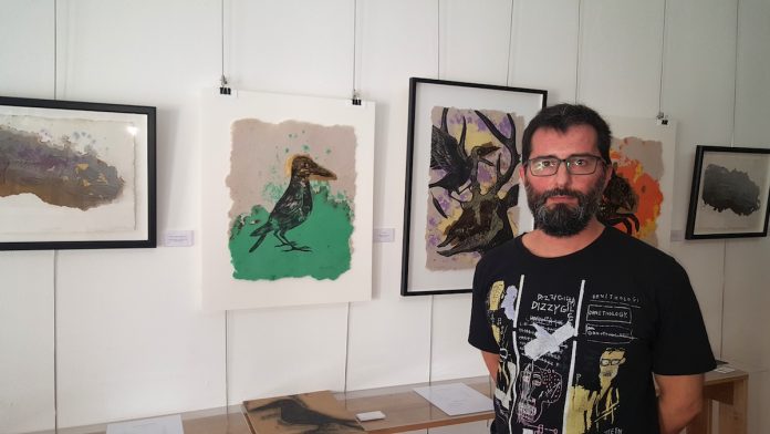 Grabado o gravura, en portugués es una disciplina artística que utiliza diferentes técnicas de impresión para lograr la reproducción múltiple de una imagen. Por tanto, “gravuras” es el título que escogió Alfonso para su segunda exposición en Caminha, en la que reunió una serie de trabajos realizados en el ultimo año y que recoge algunos aspectos de su proceso creativo actual, en el que combina mayoritariamente la xilografía y la pulpa de papel como elemento constituyente de las estampas, jugando con la reproductividad a través de las matrices y la condición de obra única que aporta la pulpa de papel.