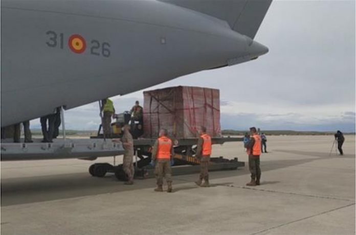 Esta tarde ha aterrizado en la base aérea de Torrejón de Ardoz un nuevo avión con material sanitario procedente de Shangai (China). El Airbus A400M del Ejército del Aire transportaba dos millones de mascarillas quirúrgicas adquiridas por el Ministerio de Sanidad para hacer frente a la crisis del COVID-19.