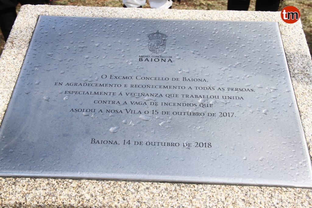 El alcalde de Baiona, Ángel Rodal, indicó que “aunque los incendios fueron el 15 de octubre, decidimos hacerlo hoy porque fue un domingo el día de la tragedia. Hicimos una declaración institucional en la que acordamos hacer un monumento a la labor de todas las personas que aportaron su granito de arena para extinguir los incendios”.