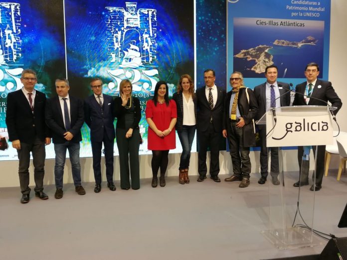 El Alcalde de Baiona, Ángel Rodal, arropado por la Concejala de Turismo, Beatriz González, y la Directora Xeral de Turismo de Galicia, Nava Castro, presentó al público asistente al acto la importante efeméride que se celebrará en la Villa durante el año 2018: el 525 aniversario de la Arribada de la Carabela Pinta a este puerto.