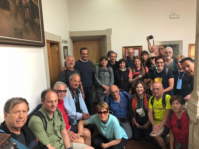 El Alcalde de Baiona ha recibido esta jueves a una treintena de peregrinos italianos, de la zona de la toscana, que han elegido la Villa de Baiona como punto de partida de su camino de peregrinación hacia Santiago de Compostela.