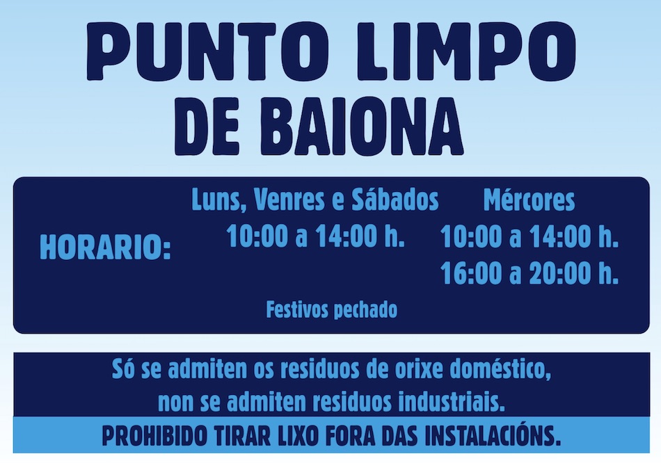 Inicio Baiona Baiona reabre el punto limpio BaionaPolítica Baiona reabre el punto limpio Por Redacción - 12/05/2020 FacebookXWhatsAppTelegram GOOGLE MAPS Desde este miércoles, el Concello de Baiona reabrirá el punto limpio situado en Baíña. La persona que acuda al punto limpio, debe depositar los residuos en el lugar correspondiente, y se aconseja acudir con mascarilla. Horario: El Tiempo Oia lluvia ligera enter location 15 ° C 15 ° 15 ° 100 % 5.7kmh 75 % Jue 15 ° Vie 19 ° Sab 16 ° Dom 17 ° Lun 17 °
