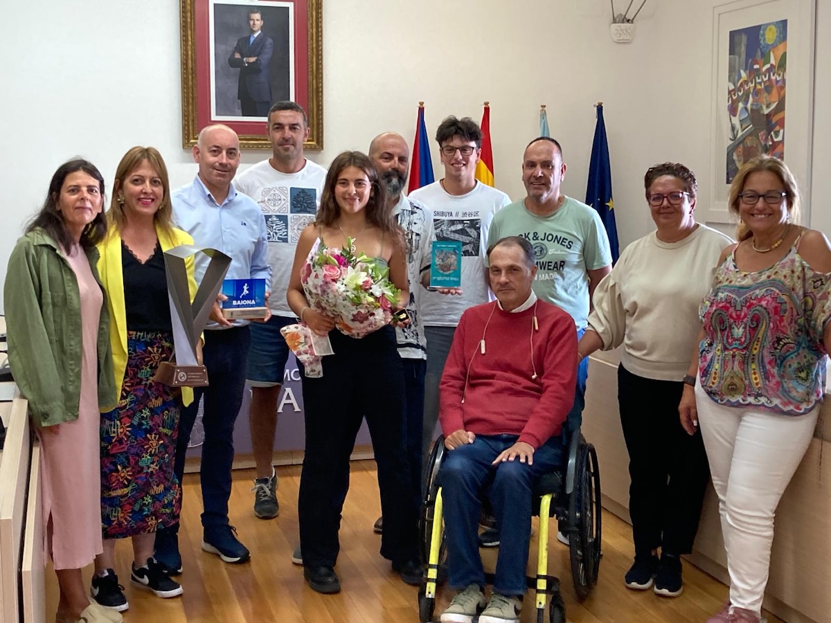La campeona mundial de Kitesurf en Freestyle Sub 19 femenino, Vera Vázquez, acudió a la casa consistorial del Concello de Baiona acompañada por sus padres, su hermano y su tío, y a la vez entrenador personal Dani, también vecino de la villa, junto con varios de sus trofeos conseguidos.