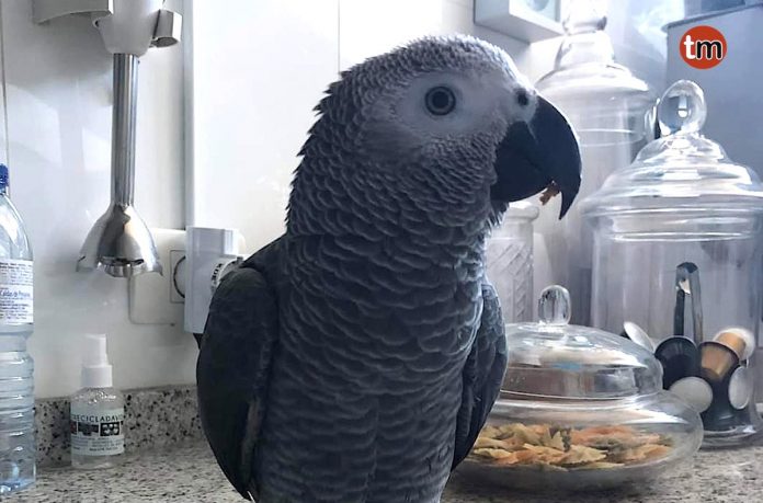 El animal es muy hablador, canta y dice el nombre de sus dueños y de los perros. Cumplió dos años, está anillado y tiene chip.