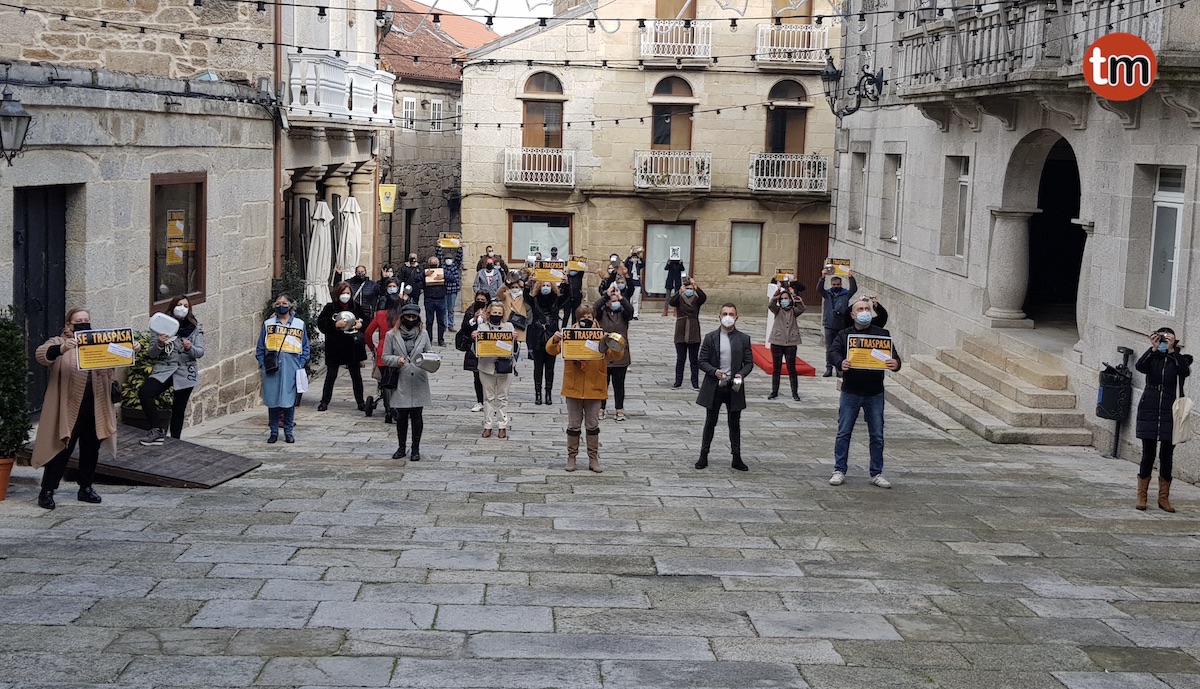 Cerca cuarenta comerciantes y hosteleros de Tui protestaron esta mañana delante del concello armados con cacerolas y carteles de “se traspasa” para reclamar al consistorio la reapertura al tráfico rodado del Paseo da Corredoira, peatonalizada desde el pasado mes de mayo, y así salvar sus negocios del cierre definitivo, “ante la falta de clientes porque no tienen donde aparcar».