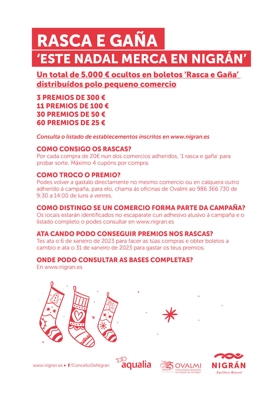 El Concello de Nigrán y la Asociación de Empresarios Ovalmi amplían por vez primera su campaña ‘Este Nadal merca en Nigrán’ al reparto de un total de 5.000 € ocultos en 25.000 boletos ‘Rasca e Gaña’.
