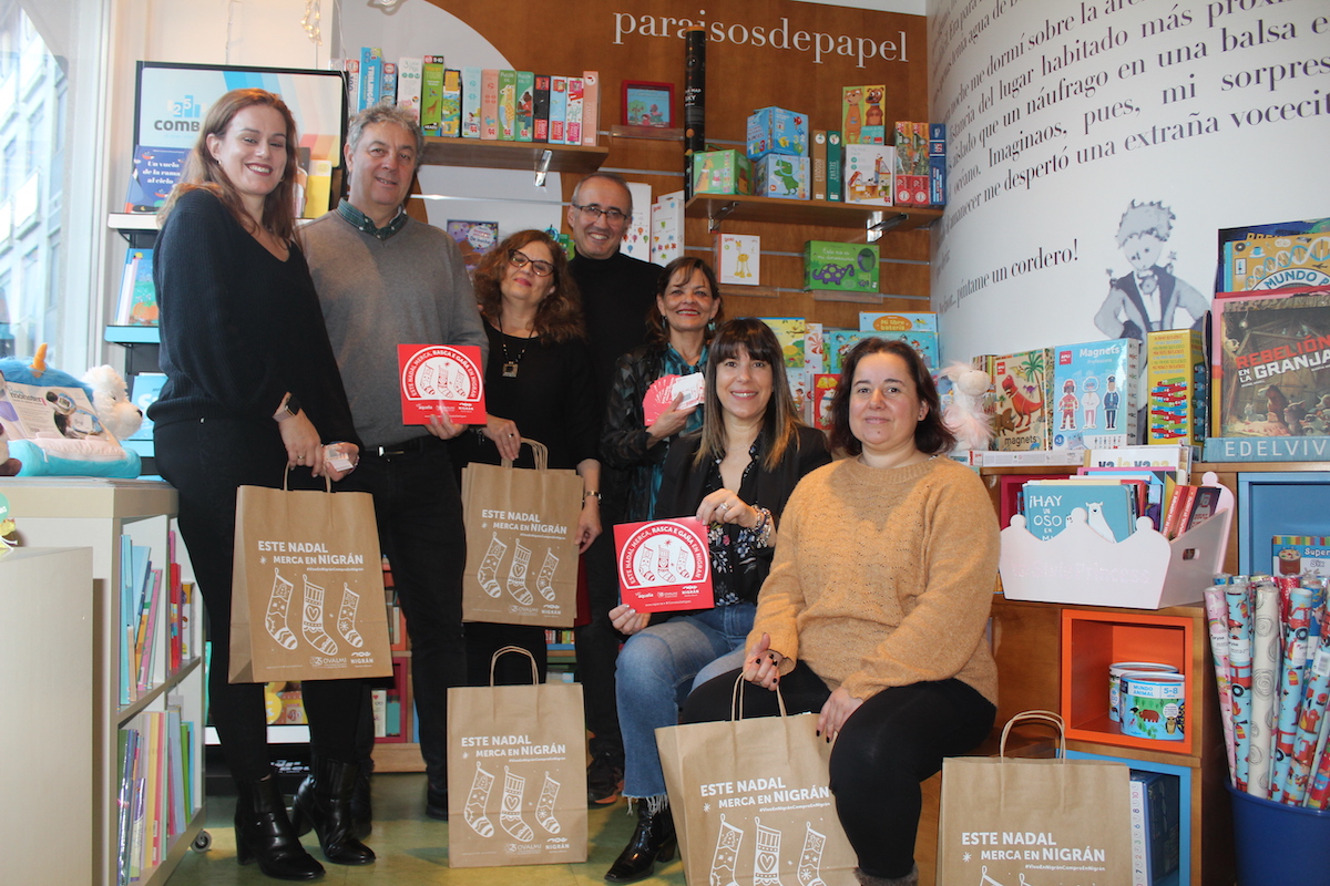 «Foi unha proposta nova de Ovalmi ao Concello e nos pareceu moi interesante para complementar a campaña #EsteNadalMercaEnNigrán que estamos a levar a cabo cos nosos comerciantes en redes sociais, vallas e anuncios publicitarios», explicó el alcalde, Juan González, en la presentación de la iniciativa en la librería Paraísos de Papel junto con el presidente de Ovalmi, José Ángel González; la edil de Comercio, Patricia Diego; de Servicios Sociales, Bibiana Peixoto; y las dos libreras Beatriz y Mayte.
