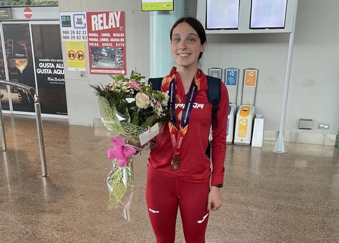 Caluroso recibimiento a primera hora de la tarde del sábado en el aeropuerto vigués de Peinador a la atleta baionesa de la S.A Val Miñor, Ainhoa Repáraz. Tras su exitosa actuación en el europeo Sub 18 de Jerusalén, que finalizó con el récord de España Sub 18 de los 100 ml, récord gallego absoluto de los 100 ml, así como la consecución de la medalla de bronce en el relevo 4×100, 200, 300 y 400, quedándose a 2 centésimas del récord de la categoría.