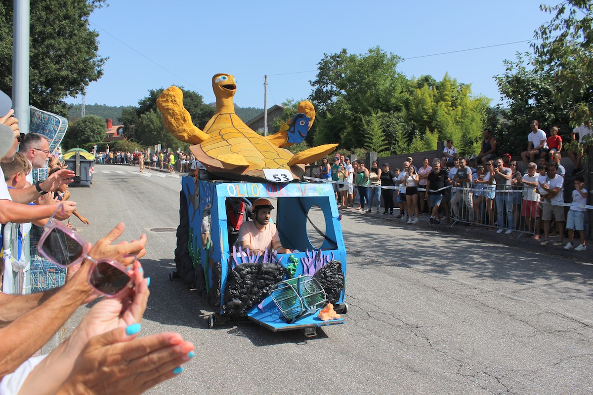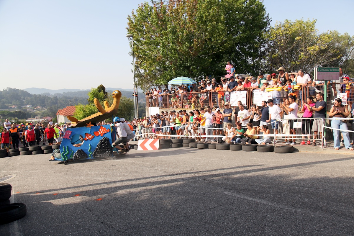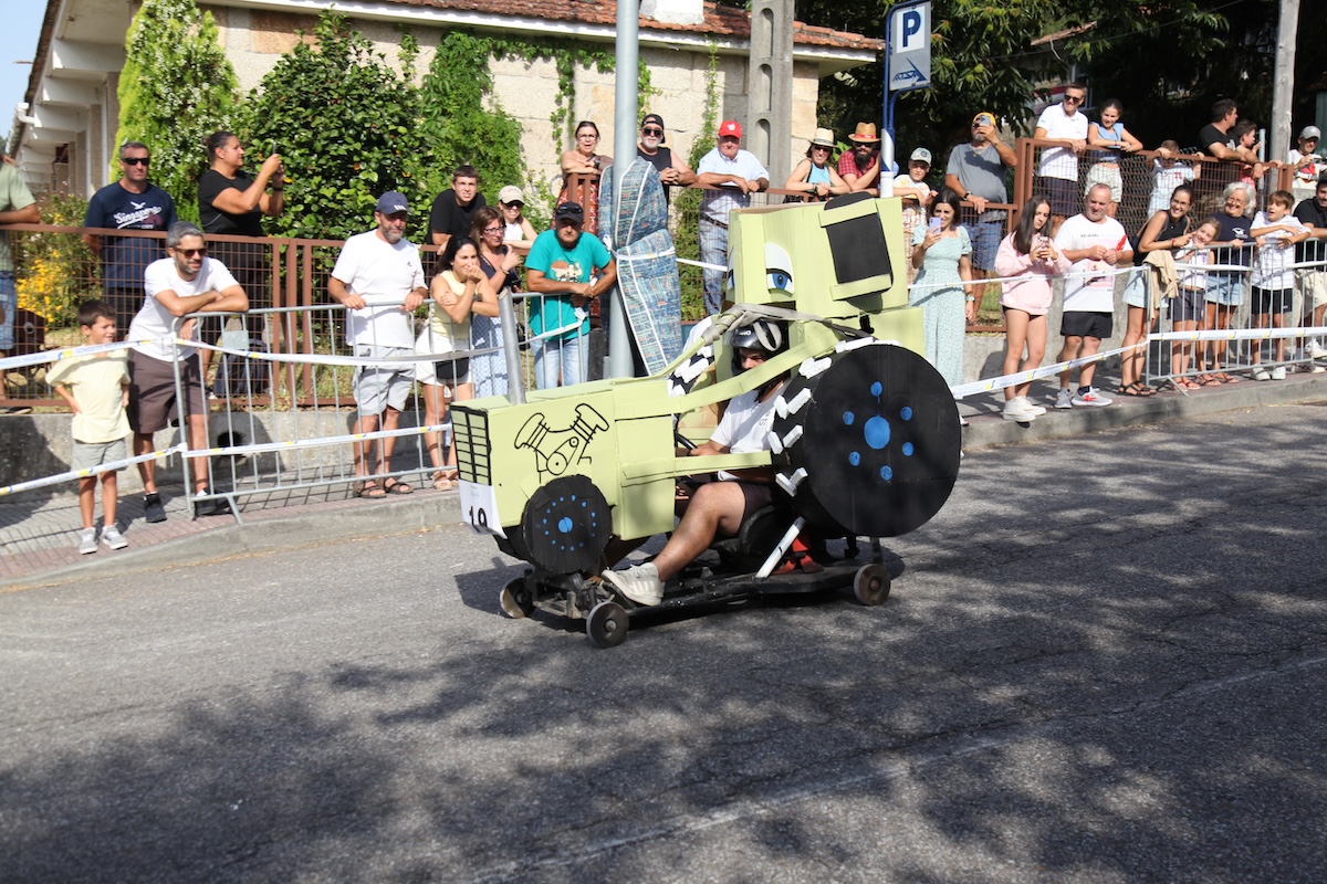 Velocidad, creatividad y buen humor se dieron cita este viernes en la Baixada de Carrilanas de Camos, organizada por el Concello de Nigrán y el Centro Cultural A Camoesa. Un total de 70 vehículos de inercia —14 de ellos de fabricación artesanal— participaron en una de las competiciones más esperadas del verano, combinando espectáculo y adrenalina.