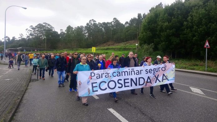 Esta mañana, cerca de mil personas se han movilizado por la circunvalación del monte Santa Trega para reclamar una “ecosenda segura de Camposancos ata A Guarda”.
