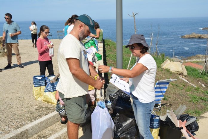 La presentación contó con la participación del gerente del Colegio Oficial de Biólogos de Galicia, Pablo Fernandes Alonso, en un acto en el que también estuvieron presentes el polifacético artista marinense Antón Sobral, encargado de dirigir la intervención escultórica final junto con la pontevedresa Carme Hermo, así como representantes de varios de los ayuntamientos y asociaciones del tercer sector que colaborarán en las jornadas de limpieza, como el concejal de Participación Vecinal y Voluntariado del Concello do Rosal, Ramón Fernández Leal, o Nuria Castro Martínez, presidenta de la asociación A Jalleira, un colectivo que participó muy activamente en esta primeria actuación llevada a cabo en la costa rocosa de la playa de Portecelo, en la que el nutrido grupo de voluntarios participantes formado casi treinta personas, consiguieron retirar cerca de 220 kilos de basura marina, fundamentalmente objetos extraviados durante la actividad pesquera, como boyas, trozos de redes, cuerdas, cabos y otras espumas sintéticas, aunque tampoco faltaron otros de origen terrestre, como un neumático, colillas, restos de envases, latas, botellas, bolsas y envoltorios, varias piezas de calzado, una pelota, los restos de una silla de plástico, trozos de cerámica y uralita, maderas tratadas, así como pequeños pedazos plásticos no identificables en cuanto a su origen.