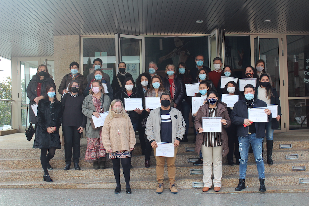 La Fundación Érguete-Integración, Diputación de Pontevedra y el Concello de Nigrán celebraron esta mañana en el Auditorio Municipal la clausura del curso ‘Acompañante de transporte escolar e comedor escolar”y ‘Auxiliar de Comercio’ de mejora de la empleabilidad dirigido a desempleados.