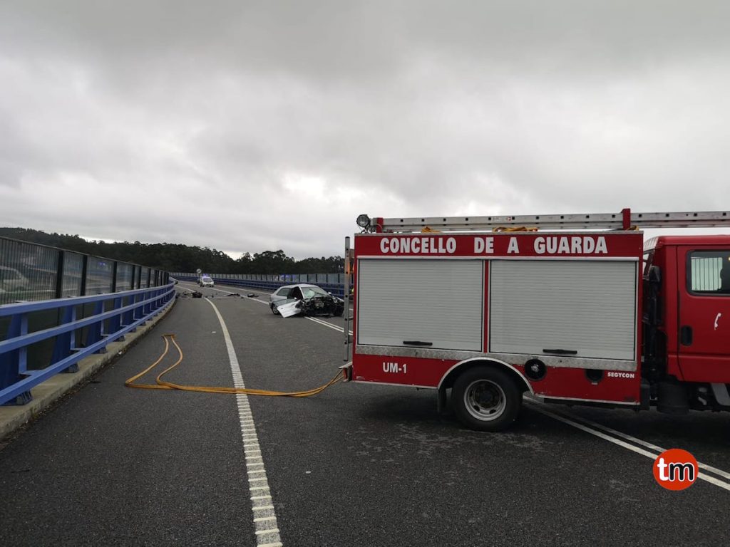 Un aparatoso accidente registrado a las 9:03 horas de este jueves en el vial A Guarda-Goián, ha obligado a cortar al tráfico rodado un carril de dicha carretera.
