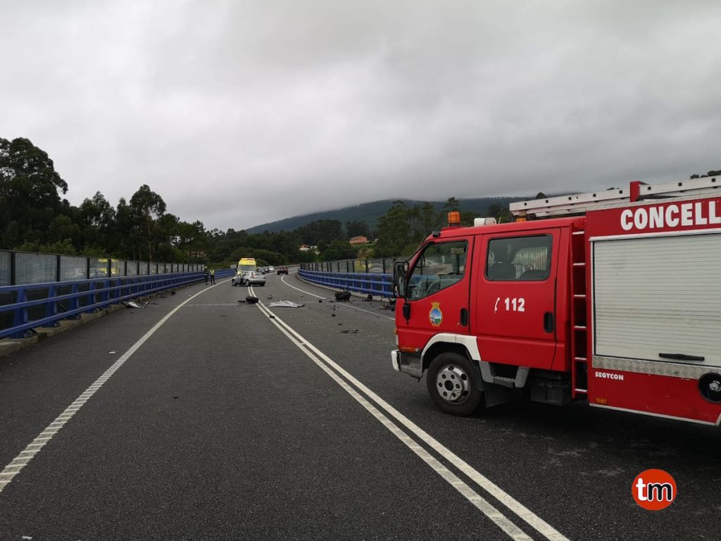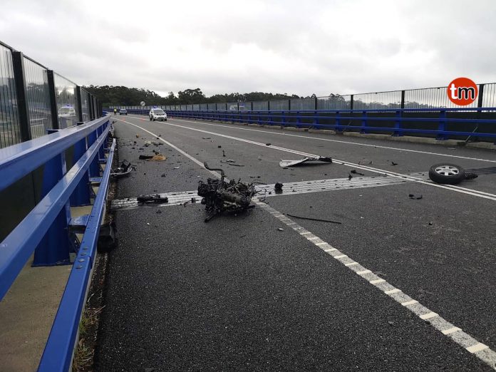 El suceso se registró a la altura del puente de O Tamuxe, O Rosal. Una conductora perdió el control de su vehículo y colisionó con el guarda rail, salió despedido y quedó en medio de la calzada. Los restos del coche quedaron esparcidos en medio del vial.