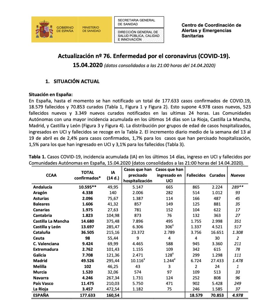 Por otra parte, las muertes por la terrible enfermedad bajan a 523 en las últimas 24 horas, lo que sitúa el número de fallecidos en 18.579, según ha informado el Ministerio de Sanidad. La buena noticia es que ya se han recuperado 70.853 personas.