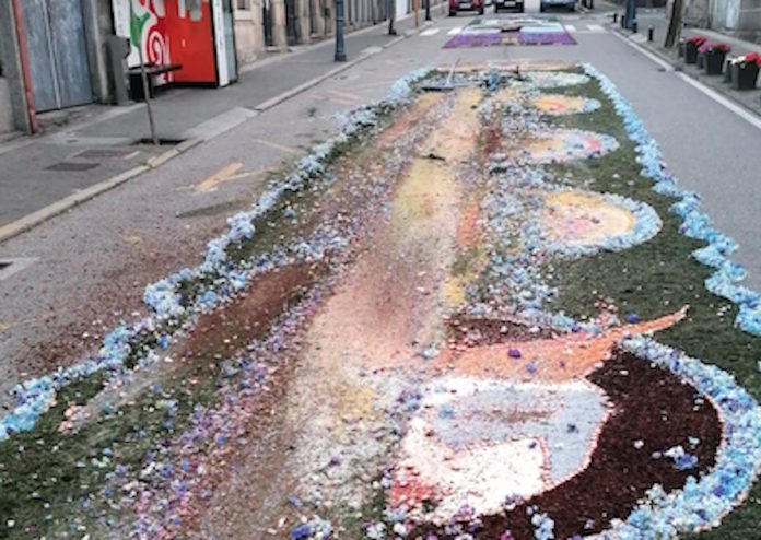 Afirmaban que esta madrugada un vehículo arrasó parte de las alfombras recién hechas y se llevaron por delante las vallas de protección, “dende a nosa Asociación e para todas as persoas que colaboraron neste precioso traballo e agora senten unha gran tristura pola desfeita….unha forte aperta e moito ánimo, e para o ano con máis forza”.