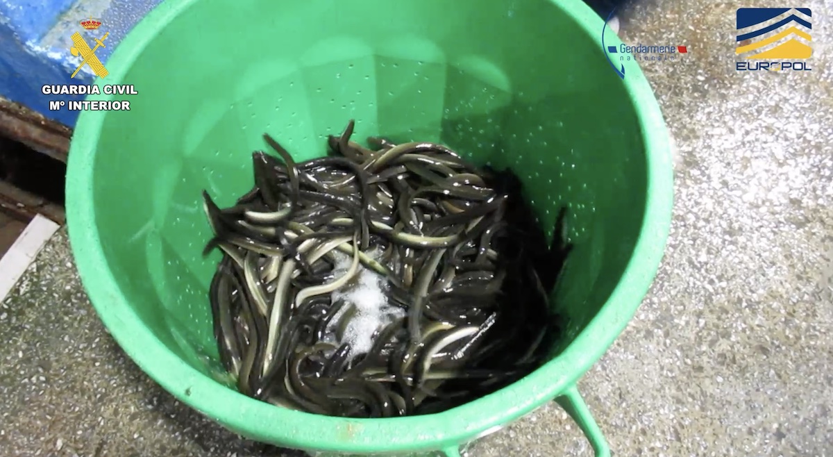 La Guardia Civil, en una operación conjunta con la Gendarmería Nacional Francesa, coordinada por Europol y la Oficina Europea de Lucha contra el Fraude (OLAF) ha incautado 1,5 toneladas de angulas vivas.