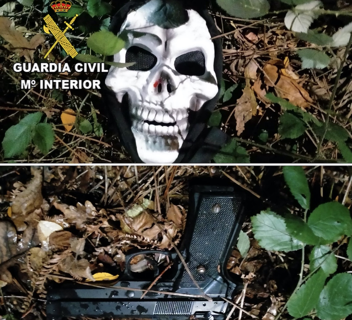 Tanto la pistola, que resultaría ser simulada, como la careta que se utilizó en la tentativa del robo, se localizaron escondidas en el medio del monte, en las inmediaciones de una urbanización.