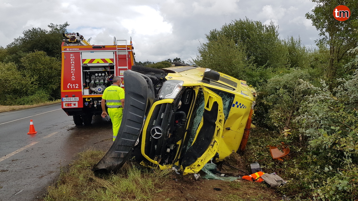 El vehículo sanitario se dirigía a un servicio a Tui. Por razones que se desconocen, la conductora perdió el control de la ambulancia, se salió de la vía por el margen derecho, arrolló dos señales y volcó sobre su lado izquierdo.