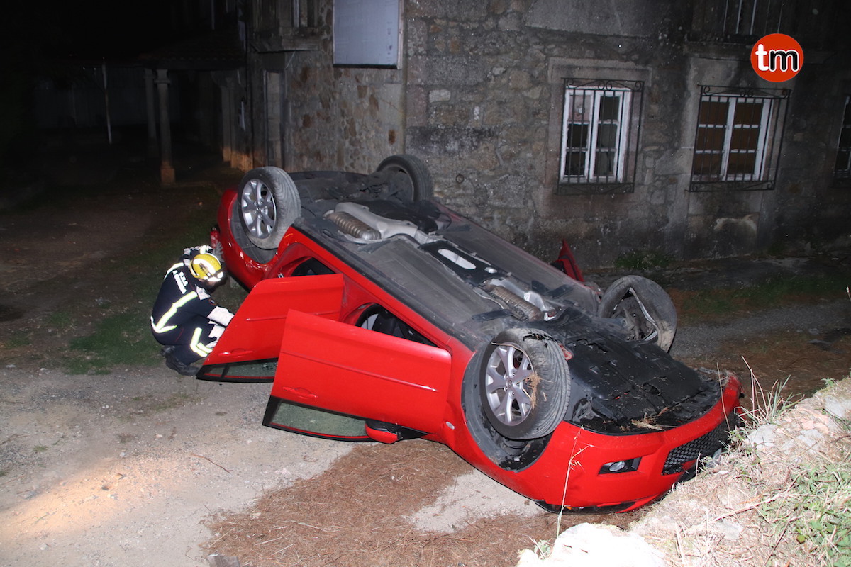 Dos jóvenes han resultado heridos en la madrugada de este lunes tras salirse de la vía, colisionar contra un muro y volcar con su vehículo en A Guarda. El suceso se produjo pasada la media noche en la carretera PO-552 a la altura de Salcidos.