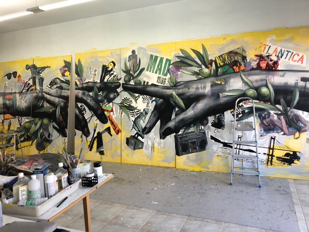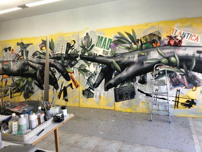 El hospital Álvaro Cunqueiro, albergará de manera permanente el mural de gran formato que la artista baionesa Lula Goce elaboró para la escenografía de los Premios de la Cultura Gallega 2019.