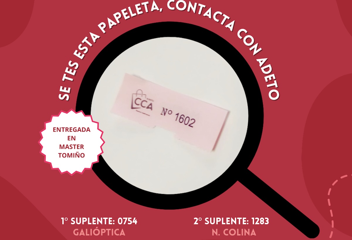 En el sorteo, además del número premiado (el 1602) se sacaron dos más correspondientes al primer suplente (el 0754, entregado en Galióptica) y el segundo suplente (1283, entregado en el Nueva Colina). Tanto la persona con el número premiado como las que posean los números suplentes disponen de unos días para contactar con ADETO y obtener el premio.