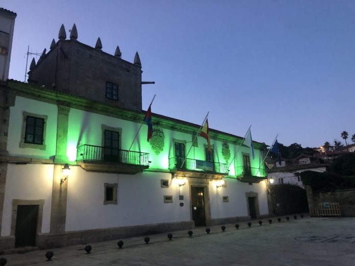 Hoy, 21 de junio, se celebra el Día mundial del la ELA y el Concello de Baiona ilumina de verde la Casa Consistorial.