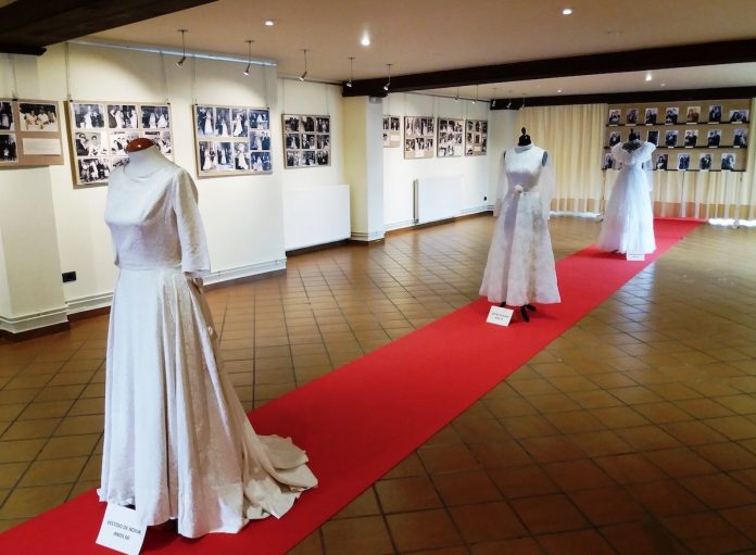 Acompañando a las fotografías, hay tres trajes de novias cedidos por las familias para esta ocasión. Son representativos de los años 60, 70 y 80 y hacen referencias al paso del tiempo en las modas y gustos. El horario de apertura por las mañanas es de 10.00 a 14.00 horas, y por las tardes de 16.00 a 20.00 horas.