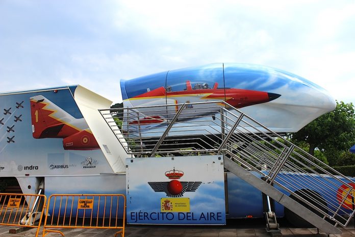 Con motivo de la entrega del Galardón “Santos Peralba”, al General de División del Ejército del Aire, D. César M. Simón López, el Alcalde de Baiona, Jesús Vázque Almuiña, inauguraba a las 12:00 horas el emulador de vuelo de la Patrulla Águila del Ejercito del Aire. Desde el lunes 22 de junio hasta el jueves 25 de junio los baioneses y visitantes que lo deseen puedan experimentar las sensaciones que viven los pilotos de esta «espectacular» unidad de exhibición del Ejército del Aire.