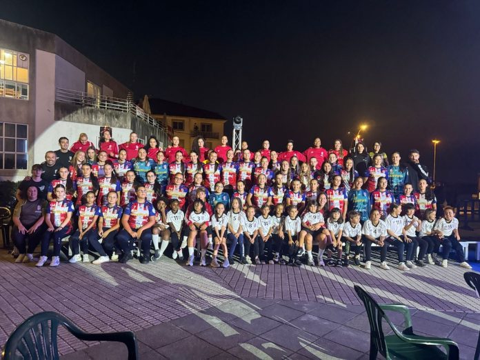 A continuación llegó uno de los momentos más esperados de la tarde, con la presentación del equipo de División de Honor ante el pueblo de A Guarda, que pudo conocer por fin oficialmente a sus siete nuevos fichajes, así como ver por primera vez la renovada equipación del equipo, con tonos negros y dorados. A la salida de todas sus jugadoras -las habituales María Sancha, Cristina Cifuentes, Cecilia Cacheda, María Palomo, Ania Ramos, Carme Castro, Elena Martínez, Jazmín Mendoza y Blazka Hauptman y las recién incorporadas Anouk Nieuwenweg, Lorena Téllez, Ariana Portillo, Sabina Mínguez, Nerea Gil, Rosane Serrano y Amandine Balzinc- y cuerpo técnico la siguieron las intervenciones de la entrenadora Ana Seabra y la capitana de la plantilla, cargo en el que María Sancha se estrena esta temporada. Ambas repasaron los momentos tan ilusionantes que dejó el curso pasado, agradecieron a la afición y al Club todo el apoyo recibido y prometieron seguir trabajando en lo deportivo.