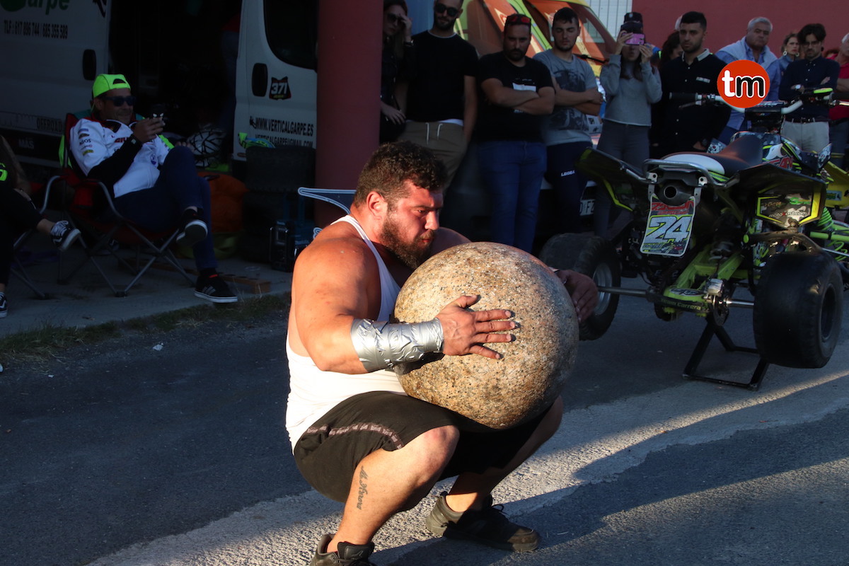 A pesar de no conseguir el récord, Rodríguez, quien come dos kilos de carne, un kilo de arroz y entre 12 y 15 huevos al día, nos dejó fascinados al intentar levantar una bola de piedra de granito de O Porriño de 195 kilos.