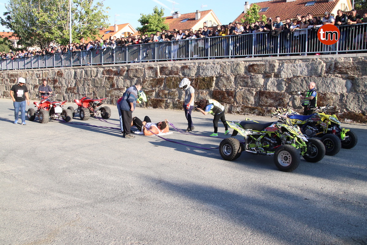 La prueba consistía en sujetar a cada extremidad de su cuerpo un quad. Los cuatro cuadriciclos tirarían a la vez, durante treinta segundos, por cada brazo y por cada pierna. Pero el deportista no pudo lograr el récord, ya que aguantó 25 segundos al pararse uno de los quads.