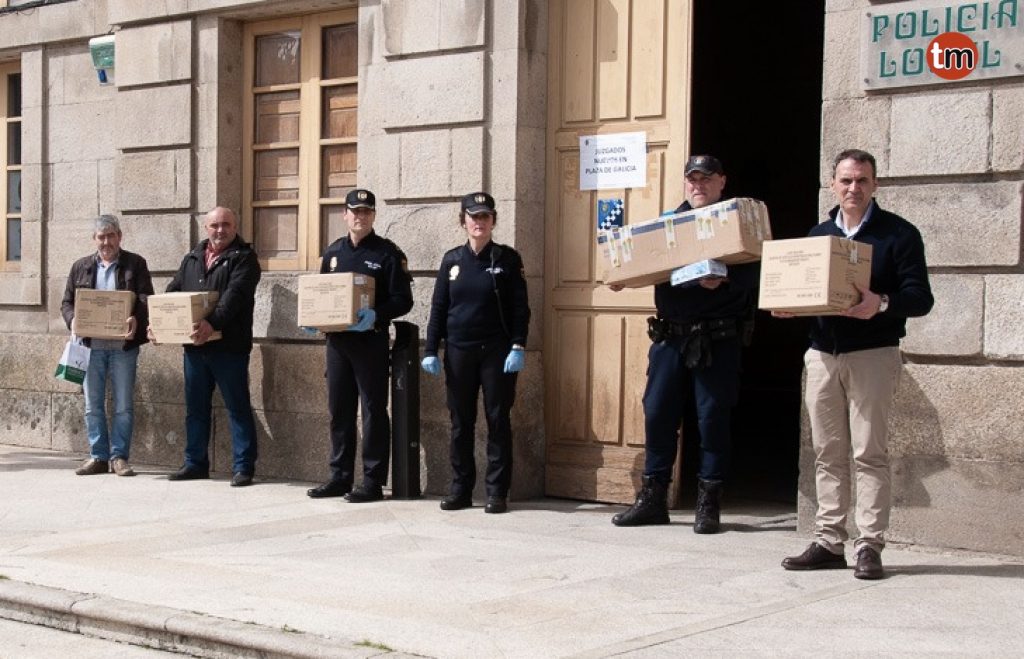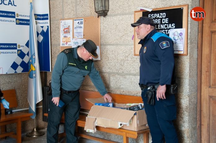 Este mediodía, en la sede de la Policía Local, se hizo entrega de 3.440 pares de guantes de nitrilo para los servicios de emergencia de Tui, (Policía Local, Concello, Protección Civil, Policía Nacional y Guardia Civil), donados por el jugador del Aston Villa, Jota Peleteiro, en colaboración con la empresa tudense Autos Rager y Miguel Hermida, vecino de Tui y colaborador del jugador gallego.